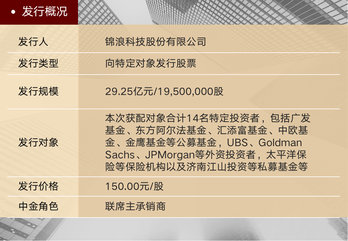 2月10日,锦浪科技股份有限公司(“锦浪科技”、“公司”,代码:300763.SZ)向特定对象发行股票项目成功完成发行并上市,发行规模为29.25亿元人民币。中金公司担任本项目的联席主承销商。