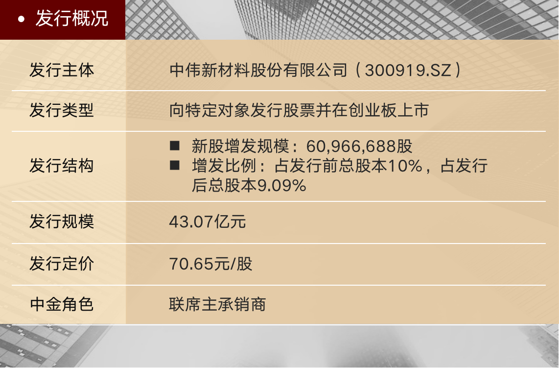 11月30日,中伟新材料股份有限公司(300919.SZ,“中伟股份”、“公司”)向特定对象发行股票并在创业板上市项目成功完成。本次发行为2022年度锂电材料领域发行规模最大的A股定增项目。中金公司担任本项目的联席主承销商。