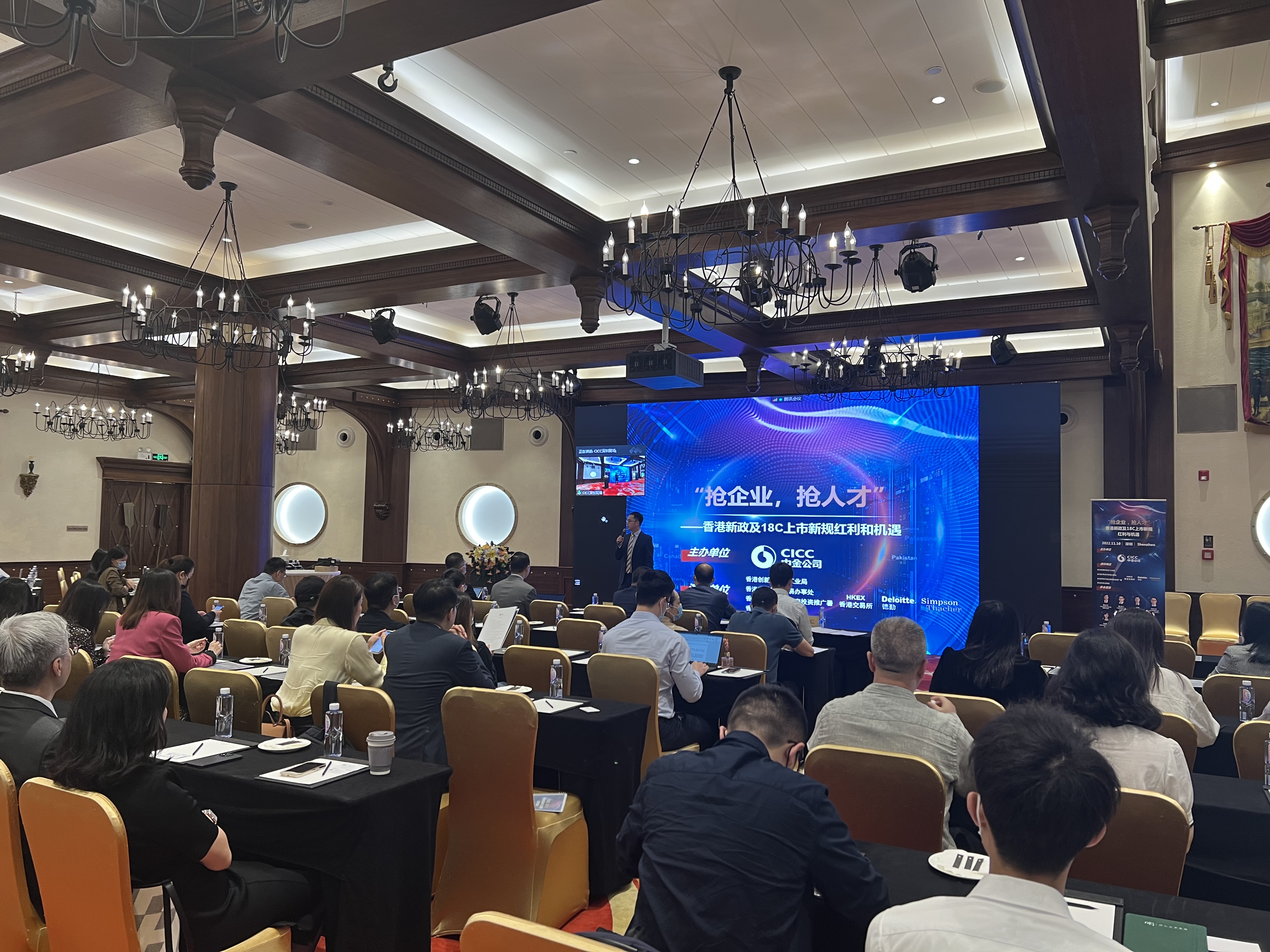 11月10日,中金公司作为活动主办方,成功举办“香港新政及18C上市新规红利和机遇”主题论坛。论坛旨在通过对近期香港特首《施政报告》及港交所特专科技企业上市新规(“18C”)咨询文件的深度解读,帮助科技企业洞悉先机,把握香港新政带来的市场红利及机遇。中金公司特邀香港创新科技及工业局副局长张曼莉女士、香港特别行政区政府投资推广署创新及科技主管(粤港澳大湾区)彭文俊先生、香港贸易发展局深圳首席代表曾沂靖先生和香港交易所环球上市服务部助理副总裁黄蕴靖女士等演讲嘉宾,以及线上线下近120位科技企业和投资机构的嘉宾出席活动并参与交流。