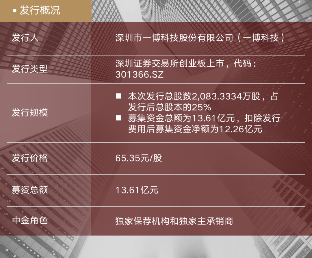 9月26日,深圳市一博科技股份有限公司(以下简称“一博科技”或“公司”,股票代码:301366.SZ)于深圳证券交易所创业板上市,中金公司担任本项目的独家保荐机构和独家主承销商。