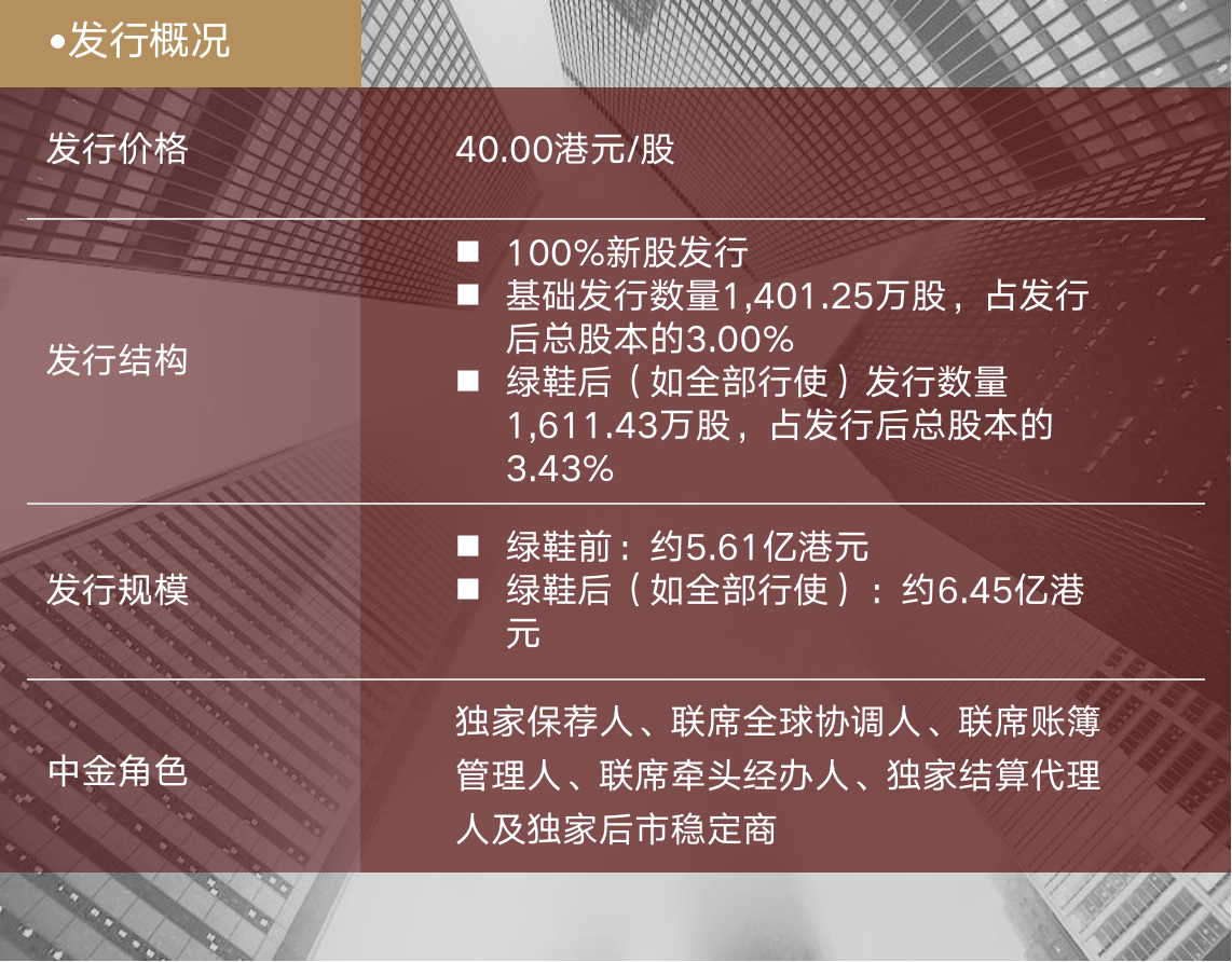 中金公司作为本项目的独家保荐人,全程牵头项目整体工作,提供全方位综合服务,协助公司保持与监管的密切沟通,及时把握项目关键节点,帮助公司充分挖掘投资亮点,贡献了约95%的国际配售订单,锁定全部基石投资者订单,赢得了客户和投资者的认可。