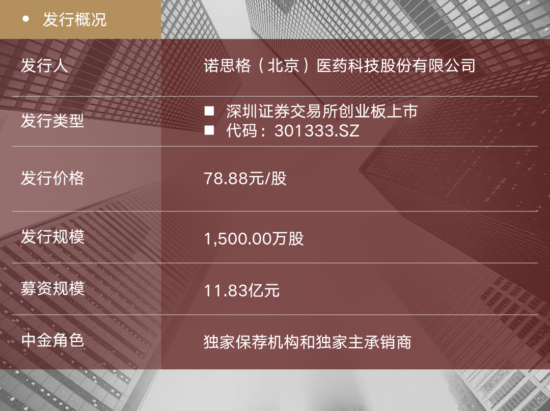 8月2日,诺思格(北京)医药科技股份有限公司(“诺思格”或“公司”,代码:301333.SZ)于深圳证券交易所创业板上市,中金公司担任本项目的独家保荐机构和独家主承销商。诺思格拥有完整的临床试验产业链条,公司在上市后将持续发挥专业优势,助力推进全球制药企业创新药物研发进程。