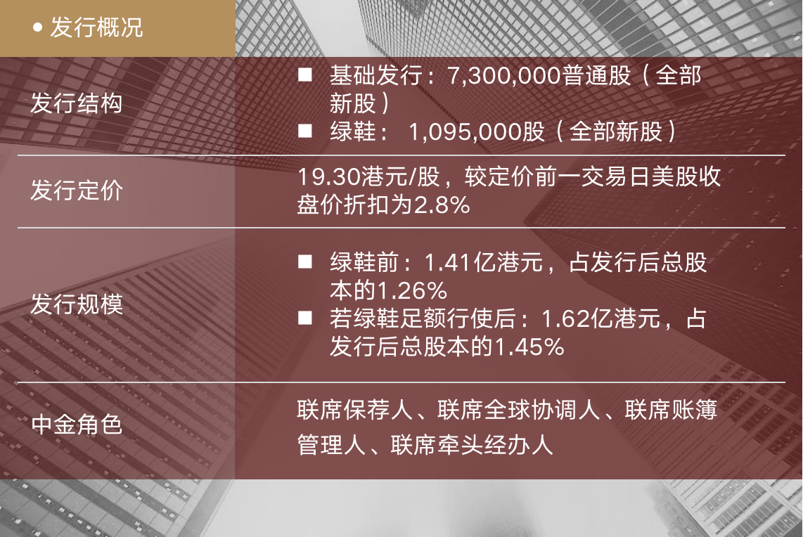 作为以“植根中国,融通世界”为使命的中国领先投资银行,中金公司一直致力于为客户提供高质量金融增值服务并持续发扬ESG理念。凭借丰富的资本市场经验、境内外业务平台的无缝对接,中金公司将持续为客户提供一流的金融服务,为企业在不同发展阶段的全球化资本运作战略做出贡献。