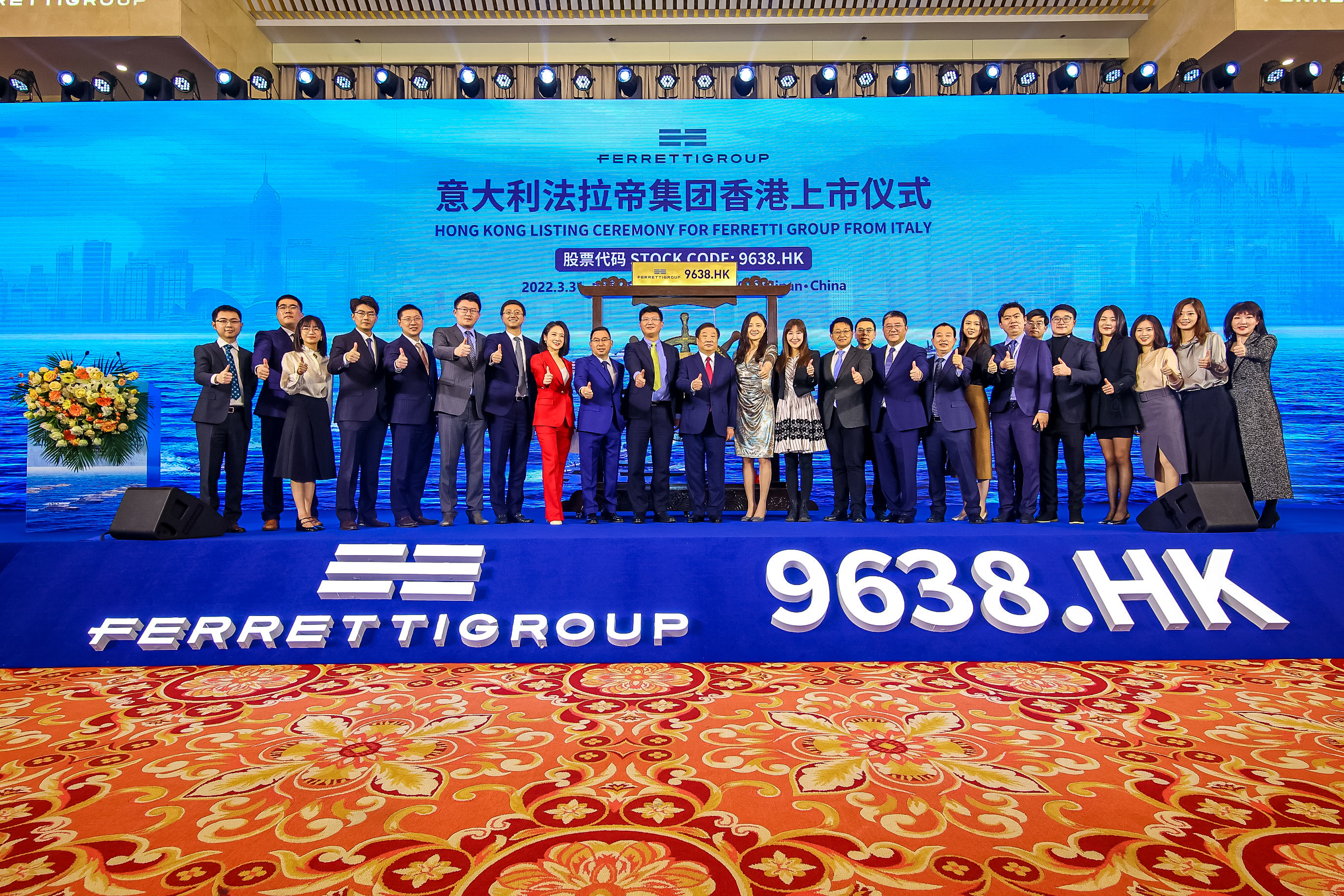 3月31日,Ferretti S.p.A. (“法拉帝”或“公司”,股票代码:9638.HK)正式在香港联交所主板挂牌,完成首次公开发行。此次上市共募集资金约2.8亿美元(假设绿鞋全部行使后)。中金公司担任本项目的独家保荐人、独家全球协调人、联席账簿管理人及联席牵头经办人。