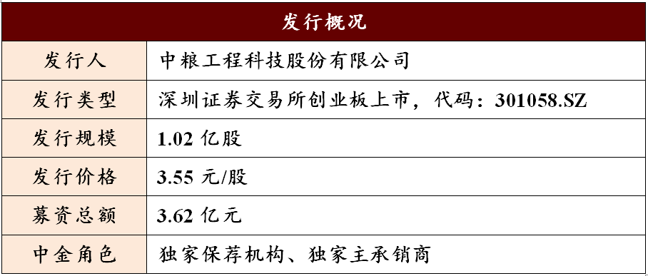 9月9日,中粮工程科技股份有限公司(以下简称“中粮工科”或“公司”,代码:301058.SZ)于深圳证券交易所创业板上市。中金公司担任本项目的独家保荐机构和独家主承销商。