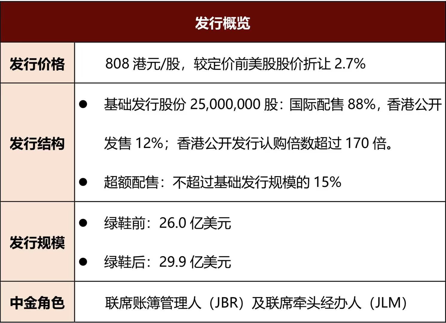 中金公司充分调动全公司的销售资源,协助公司在极为紧凑的发行时间表下高效完成发行,成功引入高质量中资投资者参与项目,并在簿记阶段为公司贡献大量高质量订单。