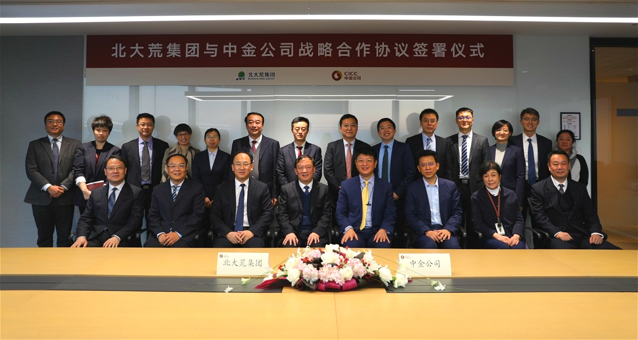 2020年11月27日,北大荒集团与中金公司在北京正式签署战略合作协议。北大荒集团(总局)党委书记、局长、董事长王守聪,北大荒集团(总局)党委副书记、副董事长、总经理杨宝龙,中金公司党委书记、首席执行官黄朝晖等出席签约仪式。