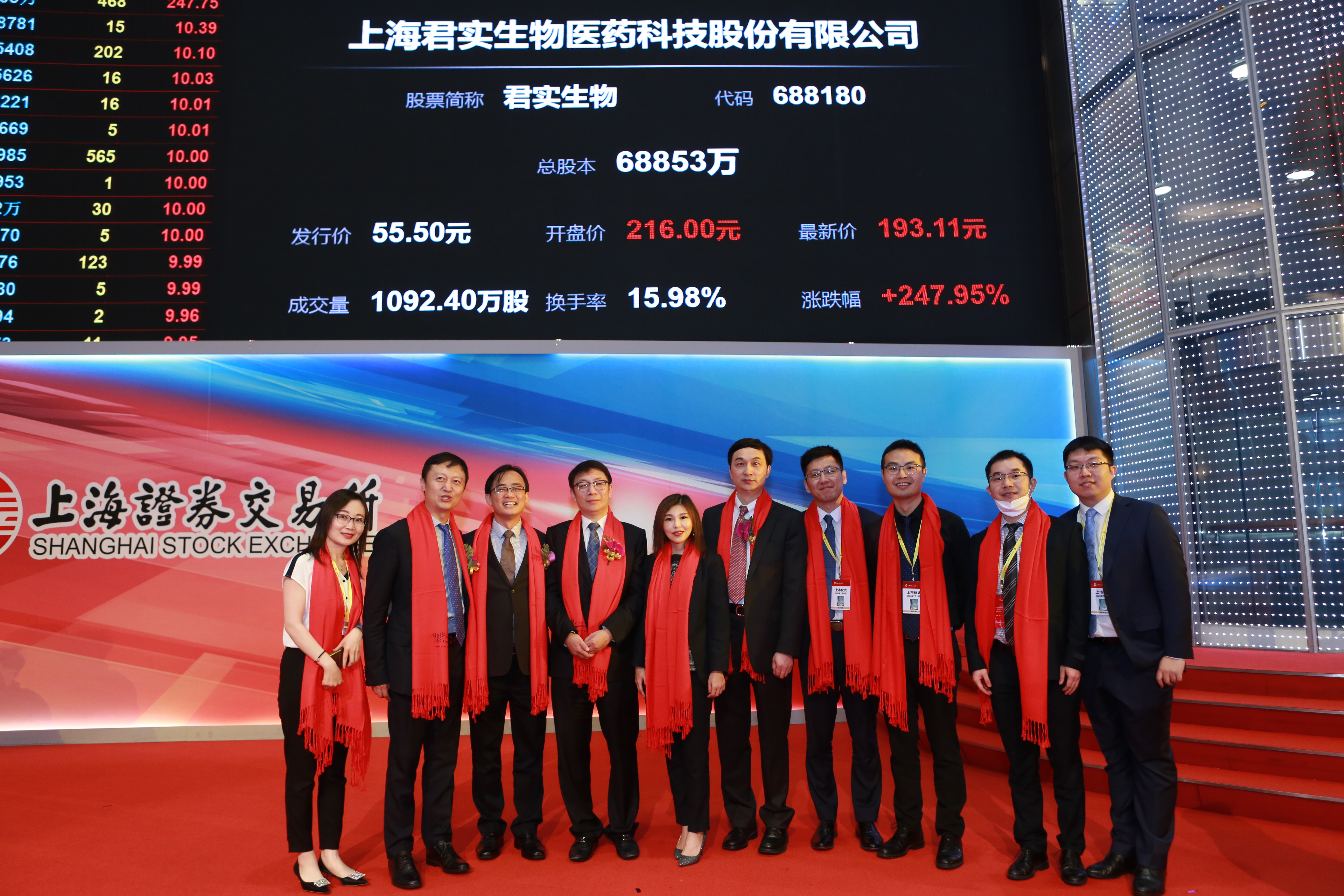 上海君实生物医药科技股份有限公司(以下简称“君实生物”或“公司”,代码:688180.SH)于2020年7月15日在上海证券交易所挂牌上市,中国国际金融股份有限公司(以下简称“中金公司”)在本项目中担任独家保荐机构和牵头主承销商。本次公开发行新股为8,713万股,占发行后公司总股本的10.00%,发行募资规模48.36亿元(以下简称“本次发行”)。本项目是科创板开板以来募资规模最大的医药医疗企业科创板IPO、自2011年以来募资规模最大的医药制造企业A股IPO、科创板资本市场上发行市值最大的第五套上市标准企业,也是第一家“H股+A股”两地上市的按照香港主板18A上市规则发行的生物科技企业,本次发行具有里程碑意义。