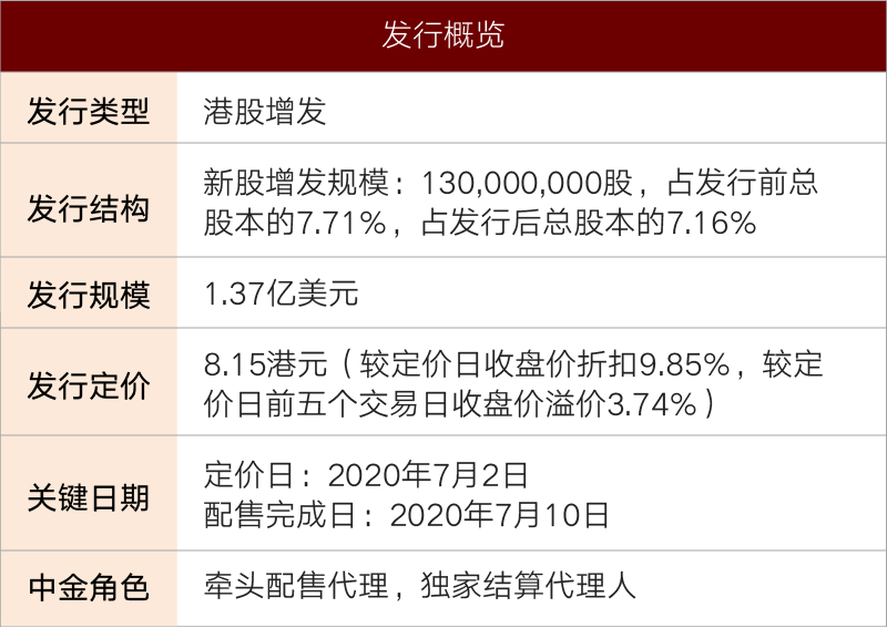 中金公司发起并全面牵头本项目,为发行人提供优质投行服务,把握项目执行进度,充分挖掘投资故事。作为牵头配售代理,中金公司报价精准,获得绝大部分承销份额,在复杂的境内外市场环境下,精准把握市场窗口,紧密跟踪行业动态和公司股价表现,基于对市场环境的准确判断和对发行窗口的良好把握,协助公司顺利实现了价量双优的发行结果。
